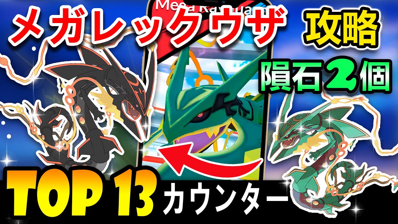 【緊急】メガレックウザ帰還!絶対もらうべき隕石2個の使い方と色違い対策!最強13カウンター編成で完全攻略